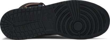The 1 Retro High Tokyo Bio Hack GS features a black, brown, orange, and pink leather upper with light blue tones covering the upper toe and wrapped in darker shades of blue going up. From there, Racer Pink provides accents for the lining at the ankle, Laser Orange adds another splash to the tongue, and a silvery "Swoosh" complete the design.
